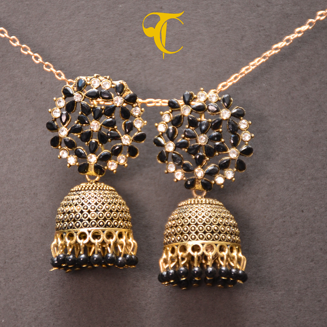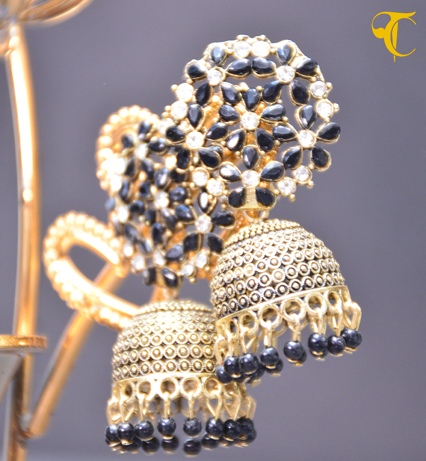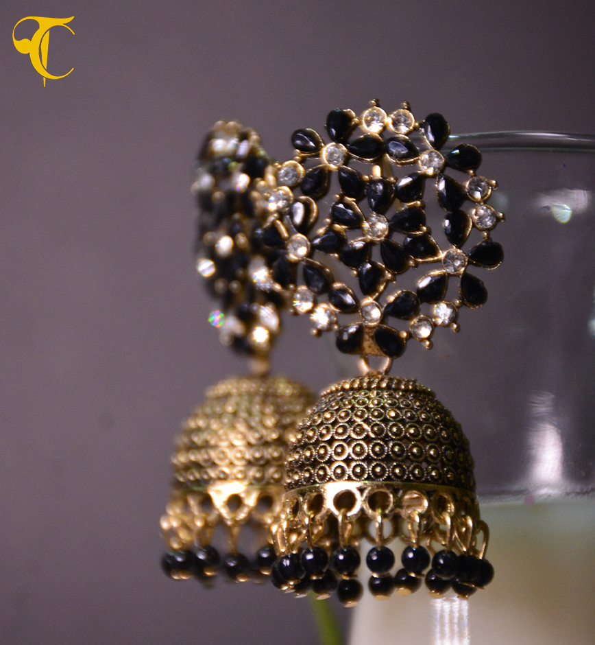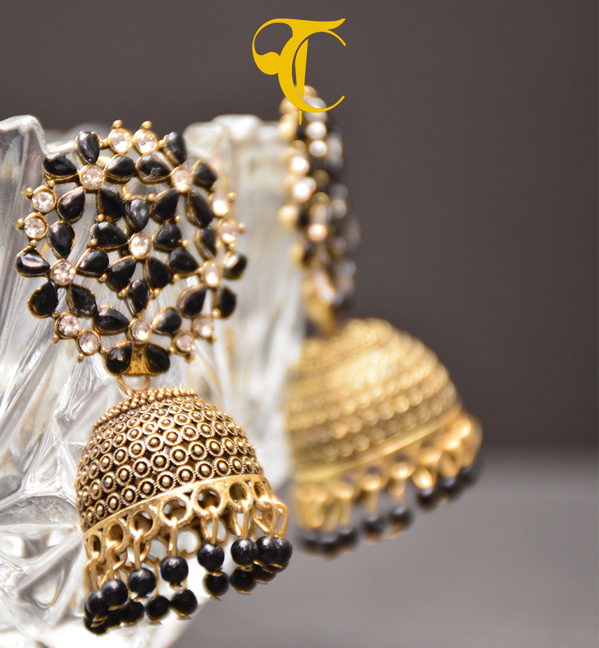 Traditional Jhumkee Earrings perfect for wearing in a wedding, available in four different colors.